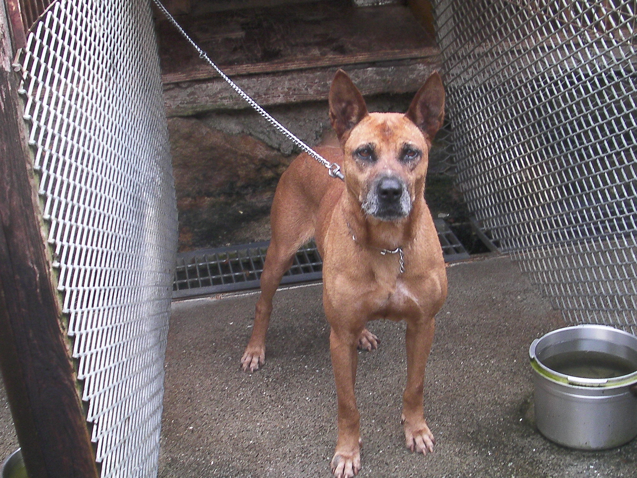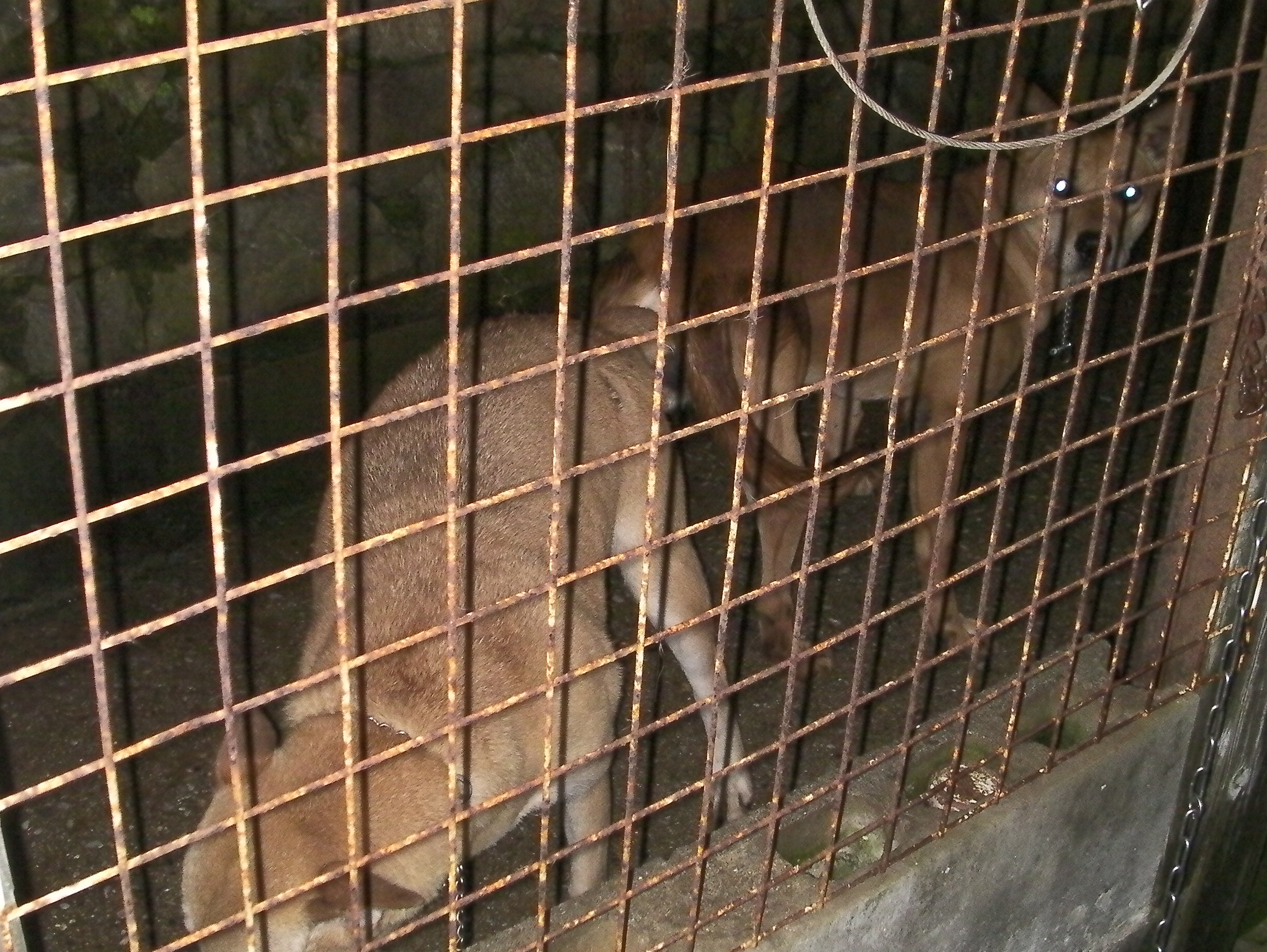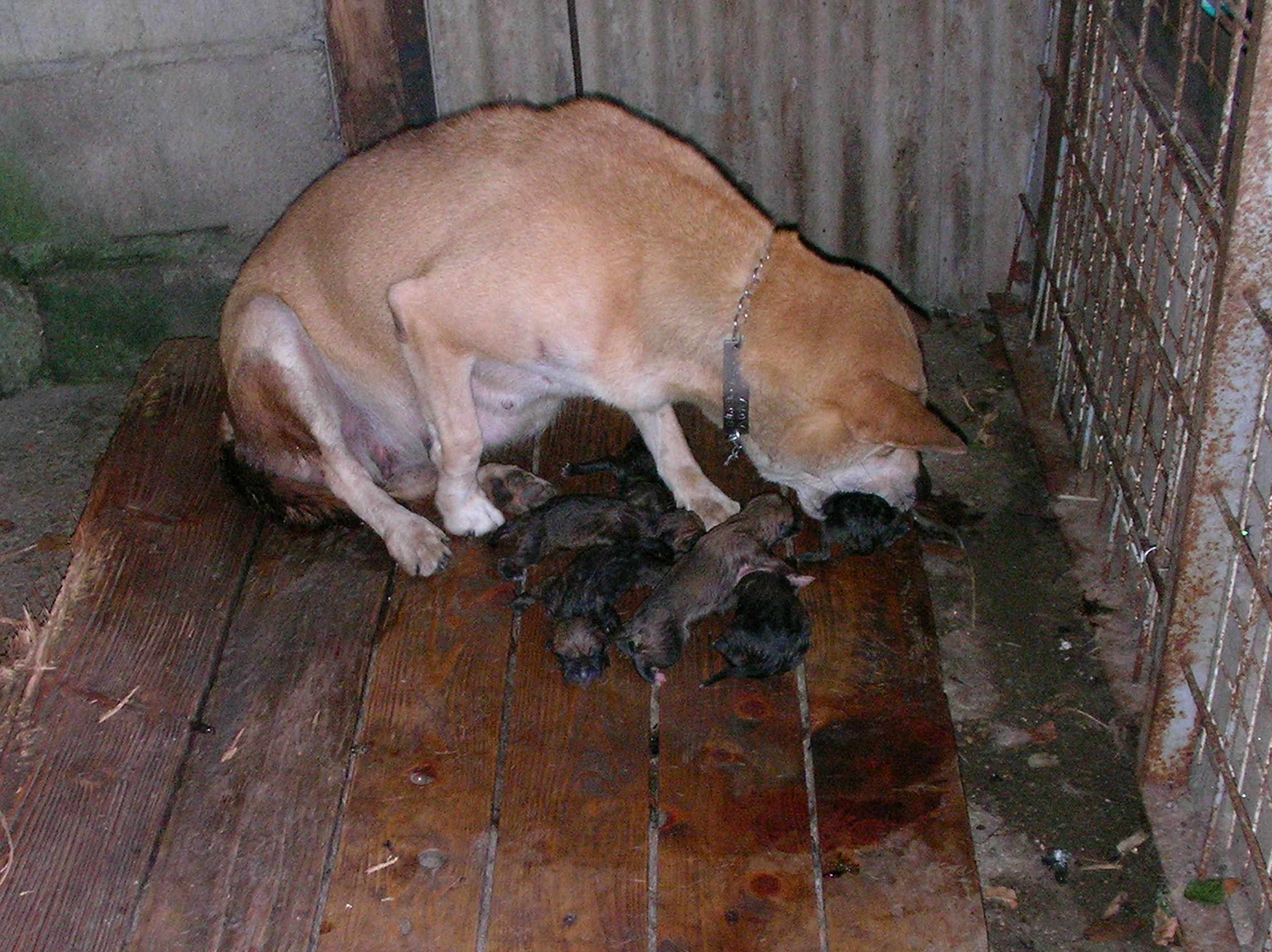 両親とも南九州の地犬系です今日で25日、丸々とした良い子犬 当方からお譲りしたメス親犬です、持ち主はこの1頭で単独猪狩りをしています、(友人と同行もしているみたいですが)もちろん猟果はコンスタンスに捕獲いたしています、怪我はそこそこしますので、もう1頭欲しいと言う事で私の犬では無いとだめと言うわけで我がオス犬と頑張った? 彼は私より歳は上だが、私の犬を猪猟を始めたときからもう数頭使っている、(途中他の犬も入れたみたいだが?) がち犬は1頭か2頭引きで少数精鋭、この地で私の犬を飼って地元の猪猟師に『こんな犬で猪が獲れるか』と馬鹿にされたが、猪が何ぼでも獲れて一躍有名になって人、 良い犬を持てば1年生でもベテランが(自称か?)スリョッて来る・・・ 猪犬の血は代々受け継がれる・・・ 顔が細いのは真ん中の祖母犬(新田犬系)に似たのか?今では我が家の主力犬の1頭・・・ カメラが悪いのか?良く映っていない・・・ 有害駆除で活動する我が家のアマゾネス軍団・・・ http://youtu.be/UhJrm3XL2Wg良く映っていない動画です約40キロのメス猪、下の写真はアマゾネスに咬まれた猪・・・手足ズタズタでお犬様のご飯が沢山出来た? |