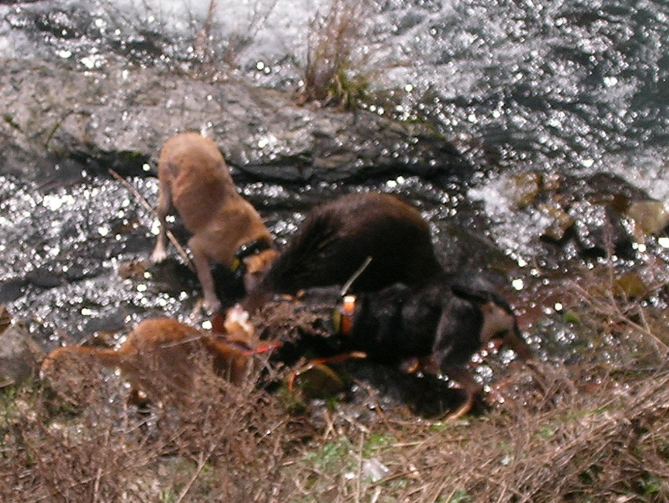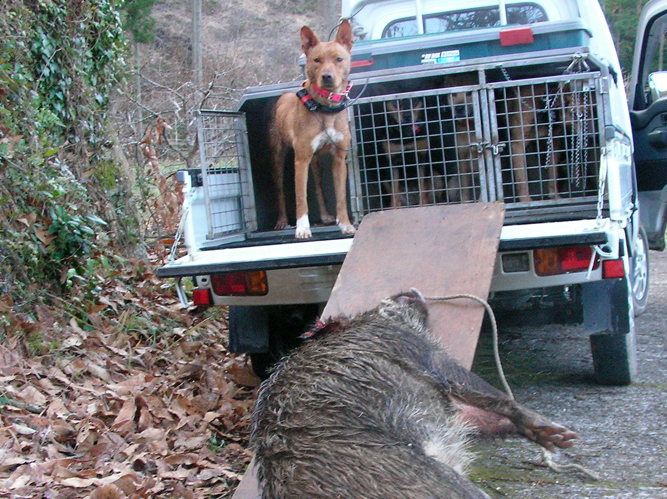 × [PR]上記の広告は3ヶ月以上新規記事投稿のないブログに表示されています。新しい記事を書く事で広告が消えます。 25年度の猪猟は終わった・・・今年度も色々と有りました、ロン号戦死、 私が正月過ぎ山で転び左ひざ骨折(1ヶ月以上休猟) 山に行ける様になったら2番手から5番までが戦線離脱・・・骨折、広範囲の怪我、肺まで行った傷等でまだ2頭は引けない・・・ ソンナコンナで予定の半分の猪しか獲れなかった、捕獲した猪は大小で約35頭・・・ 怪我するまではホトンドがオス猪、怪我が治り後半はホトンドがメス猪で良くなったんだが猟日数が足りない終了・・・ 動画も少しですがどうぞhttp://youtu.be/IwPx5zBjQ5w http://youtu.be/_M4Bdz5ZycA http://youtu.be/koEduIgY9V4 25年度はあまり良い年ではなかったが(欲を言ったらキリが無いが?)上記の犬たちも一年を取る、小さい犬たちだがさらにパワーアップしてくれるだろう、動画の1歳の(今年初陣)若犬たちも更なる発展をしてくれる事を期待しているし、まだ猟期引いていない6ヶ月から8ヶ月の犬達の成長も期待している? 4月から有害駆除も始まるので大丈夫だと思うが、 だがオイラが2月で1ッ年を取った、オイラのパワーダウンが心配だ・・・(若干兆候がある以前みたいにガムシャラが無い)・・・でもソレナリに頑張るョ、乞うご期待を・・・・・ ブログ更新が少ないのもパワーダウンのせいかな~~~すいません・・・ PR この犬はメスの新田犬系『万号』H県の方にこんな犬はだめだと言われた犬?(私の犬では自信の有る犬の1頭) 私は1頭で使う事はほとんど無いが、少し頭に来ているので単犬で使った、 探知から止めまで1頭で約50キロのオス猪を獲らしてくれた、もちろん銃は使ったが単犬でコレ位の猪を獲らしてくれたら上等だと思うが(吠え止めではない絡み止め) 成りは大きくは無いが根性は有る、(何が如何駄目犬何だろう?) 他にもロン号の子、孫たちも居るので何とか今猟期は頑張ります、暖かい声援をお願いいたします。 追伸 絡み止めの結果(私の見解)猪を見れば主に後ろ足に噛みに行っている、猪の頭から行くのではなく、逃げる猪の後ろ足に『歯』を掛けているのが捕獲した猪を解体すれば一目瞭然、ボコボコだ~・・・ 理想の攻撃だと思うが、犬を見る人が見ればやはり駄目犬なのだろうか? だが他人の目は気にしないで行く、誰も見ていない単独猟だから自分が満足すればすべて良し、犬が良くなければ単独では猪は獲れない、犬と親方だけの戦いなのだ、良くても悪くても誰も助っ人には来ない・・・ 後どれくらい獲らしてくれるか楽しみだ・・・ 柔らかくて見ての通り脂も乗り最高に美味しいです、『瞬間冷凍』で冷凍していますので生肉と遜色有りません(我が家で妻とシャブシャブで試食済み) 1パック500g、消費税送料クール代引き等込みの4,675円でお譲りいたします。 この商品は在庫8パックしかございませんので(6パックは販売済み)直接電話(09073825191)かメール(a-wild-boar@mx6.tiki.ne.jp)でお願いいたします。 子猪のすき焼き、シャブシャブ用に日本全国探してもそう有る物ではない、捕獲から販売まで一環している猟師だから出来る商品です、1度お試し有れ(ホホが落ちますよ・・?) 子猪だから下のほうには、お肉の切れ端も入っています御理解下さい。 少量ですお早めに・・・ |