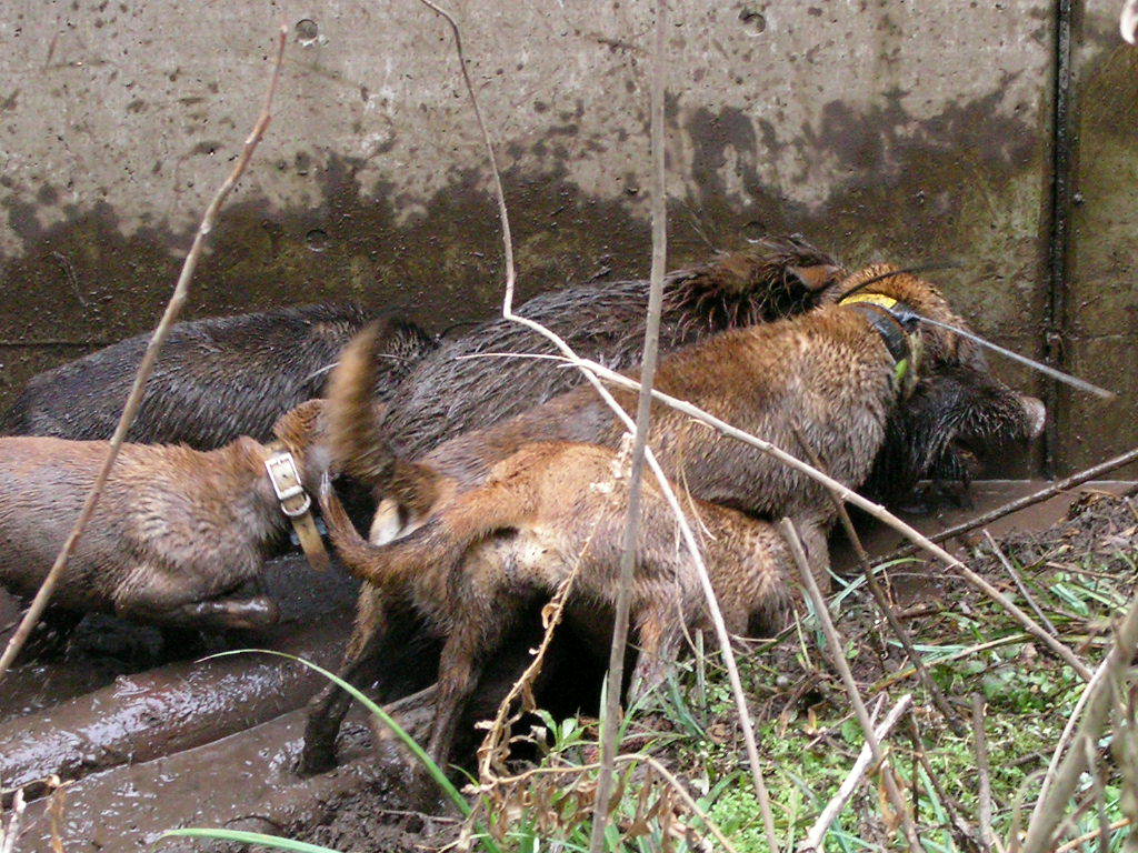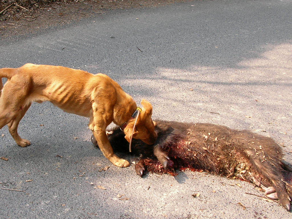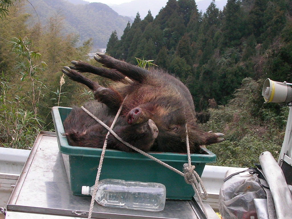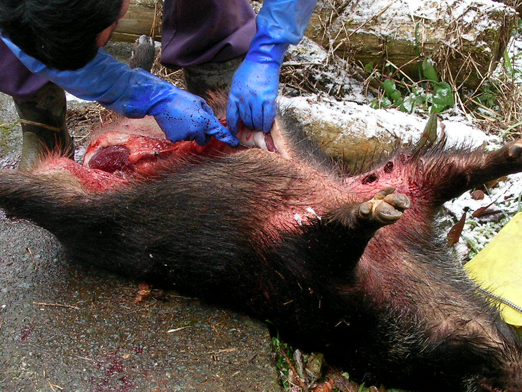 × [PR]上記の広告は3ヶ月以上新規記事投稿のないブログに表示されています。新しい記事を書く事で広告が消えます。 23年度も今回で猪狩りも終わり、4ヶ月早いような遅いような? とにかく終わり,最後の2日間は猟的にはパッとしなかった、と言うより最低に近かった?写真もこんなものしか取れなかった?が動画も少し有るので見てチョhttp://www.youtube.com/watch?v=feLRDXzwM78 これもそんなによく撮れてない、おまけにメス犬もサカリが過ぎてしまったみたい?残念・・・犬は種オスに使用かと思っていた友人の犬。 23年度今回も色々有りました、最大は私が猟グループをやめたこと、群れて居る事は難しいですね・・・ダレが悪いのではないが己が楽しくなければ居ても仕方ない、自分が楽しむためにグループに居るのだから?捨てられると言うことはオイラの人柄が悪いのかネ~、だが俺適に裏切りだけは許せなかった?だから1人静かに身を引きます、他の人を巻き添えには出来ません、『老兵は去るのみ』 人柄が悪いのはいまさら変えれない、このままで行くしかない、お付き合いしてくれる人も沢山居るのだから?。 ソンナコンナで『ローンジィージィ』で行きます気軽、気楽にネ。 24年度の猟もどんな猟になるのかなー?体力、気力犬の運動マダマダ頑張らなければいけない胆に念じて行こう何処ま~でも明日が有る限り・・・・・・・・ PR 猪狩りも3月15日で終わる、後は何する? 今日もいつもの猪狩り・・・早朝よりコトコトとポイントを車で林道を流す、やがて『ここに猪が居るよ』と教えてくれる・・・『ハイハイ行ってきなさい』と放す・・・と、写真のようにコウナッタ? 今日も親子4頭で銃要らず・・・だが猪の4本の足はズタズタ・・・ 犬のご飯です、でも美味しいところのロース、バラその他部分はとっても良いお肉です、我が愛犬に感謝・・・ 午後2時最高の猪2頭目を捕獲したのでもう帰る、解体処理が待っている・・・少し辛いが喜びでも有る。 ナイフ刺しのわりには動画なしすみません、次は最終日の14,15日連休で出猟、天気もどうにか良いみたい?出来たら動画タップリ撮るるつもり? 『ロン』の子犬にサカリが来た春子を取るつもり、友人の九州地犬の咬み止め系約30キロの種をもらうつもりで居るので、14,15日は種オスの動画も撮るつもりですので向後期待。 村役をしているので年度末は忙しい、21日より泊まりでs県に出張。 同行者3名、銃もち俺一人・・・犬の応援2名、21日より雨だが22日はなんとか小降り・・・いつもの探知猟、1頭目65キロメス猪脂タップリの最高級・・・食べているのは椎、樫の実で胃袋は山の幸で一杯・・・イベリコ豚ならぬイベリコ猪?(熊本、佐賀、福岡、長崎は台風が来ていないので山の実は豊作で猪のお肉は最高) 2頭目65キロオス猪・・・3頭目75キロオス猪・・・4頭目は探すのに一苦労、奥の迫やで黒号が1頭で20キロメス猪を止めていた、1頭目の猪でgpsが猪に咬まれて壊れたのでマーカーだけで探すのは苦労する、gpsは手放せない・・・銃を使ったのは75kオス猪だけロンが皮目を切られたので明日修理・・・ 写真は夕方(とは言っても5時前)よく写らない(動画は無し) 明日はオイラの誕生日・・・何歳だろう年は忘れた(ボケタ?) 近頃寒かったり雨だったり忙しかったりで思うように山に行けない、村役も今年で卒業後1ヶ月、今期でグループRED FANGも卒業いたします、長い間猟友にはワガママで好き勝手に来ましたが長い間有難うございました、ソレゾレ皆さんに大変お世話になりましたが、これから更に1人で好き勝手に行きたいと思います、猪狩りは離れてもお付き合いは宜しくお願いいたします、少し寂しいですが生まれたときも死ぬときも1人・・・これからはローンウルフならぬローンジィジ・・・皆さん宜しくです(声掛けてね)。 2月10日久しぶりの遠征 高速代をケチり途中下車で行く、犬に用足しをさせて8時半から流す、行きはなんだかソワソワ・・・どこかに居る?別の林道に入ると『ワン』で見つけた、10時1頭目ゲット丸々した40キロのメス猪だが犬が咬んでボロボロ良いところは少ない?『ア~ァ』 気をとりなし次を探すが子猪、次も更に小さい子猪・・・だんだん小さくなる?今日はもうお終いか?もう少し根性で捜す・・・山は雪、下へ下がるが風は吹き上げ・・・引き換えし上の林道を流す。 やがて発見林道の下方行・・・やがて絡め啼き・・・1頭目はカメラを持って行かなかったので良い場面を撮れなかった、引き返しカメラを持って行く、それがこの場面で動画も有るよ、http://www.youtube.com/watch?v=PHaQ4HFY3Y4 近頃動画を上げないので寂しい方がいらっしゃるだろうが、4頭目も丸々とした60キロのメス猪・・・だがやはり肉が痛む・・・次から動画を撮るのはやめた?見てくれてる人には申し訳ない・・・ 犬は親子だ子は2歳、来猟期は子が親を追い越すだろう?楽しみだ?大怪我を負わなければ良いが? (この日は40キロ1,60キロ1、他子猪だがすべてナイフ刺し、老婆心ながら銃は使って