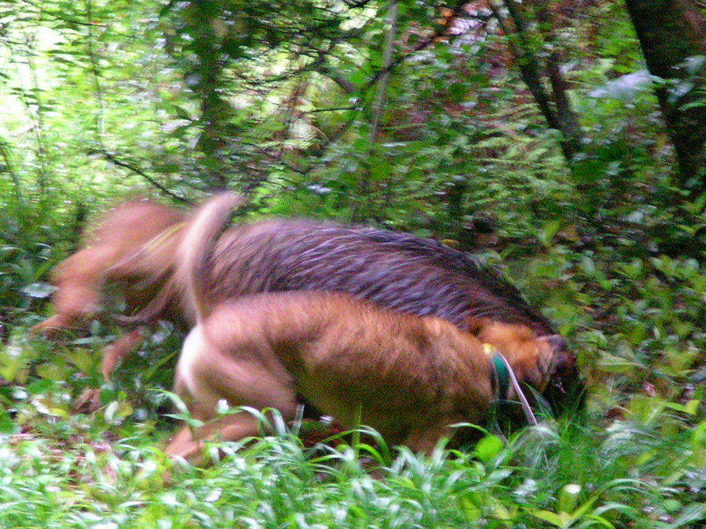 の上強制的に退会に処する。 金する、入金無き時は退会とみなす、退会は理由の如何に問わず入会費、会費は返金しない。 ⑦会費、年会費は理事代表と理事(4)名で協議し会運営に必要な物品購入、経費に当てる。 ⑧役員は理事代表1名、理事(4)名とする。 ⑨役員報酬は原則無し。 ⑩会則等の改正は理事協議で変える事ができる。 ⑪年1度、総会と懇親会を行う。 ⑫NPO野生害獣対策委員会の、活動中の事故等の責任は当事者の責任で、当委員会は何ら責任は負わないこのような活動をいたします、有害に入ってなく猟犬の運動などで悩んでいる、 都会のハンター、この活動に参加してみては如何ですか?歓迎いたします。 単独猟者、最低でも猪、鹿を追い払う犬を持っている方、マズお金にはならないと思いますしお金は少し掛かりますが(ボランテァ活動です)これで世の中人のために成り自分の猟人生が楽しめたら、言うこと無いと思うが皆さんは如何だろう?。 ボランテァ保険は『野生鳥獣被害防止活動』の名目で、地域の『社会福祉協議会』で年間420円で扱っています。 立ち上げたばかりで何かと不備な点もあると思いますが、確かな一歩から踏み出したいと思います。 私のメールアドレスです、mailto:a-wild-boar@mx6.tiki.ne.jp詳しくはこのメールか携帯で090-7382-5191、FAX0965-52-8068です、沢山の参加お待ちいたしています、人生楽しみましょう・・・ NPO野生害獣対策委員会 理事代表 大寺順一 もらい物の品で、コンクリートだけはナマコンを取ったので少しお金が掛かった。 小屋が木なので後でアングルで補強しなければ、若犬なので柱の角をカジル・・・だが後数年は壊れることは無いだろう?小屋が壊れたときは俺も壊れる・・・? いつもの頂物の猪だが動画少しどうぞ、65キロぐらいのオス猪、近くの大きな岩の穴へ入っちゃった、カメラヘタクソ・・・http://www.youtube.com/watch?v=z5EO2yPLD2cです。 熊本は今凄く雨が降っている・・・明日も雨だそうな・・・被害が出なければ良いがなー、 オイラも川に流されないようにしょう。 今年も収穫が楽しみだ? オャー横に箱罠が・・・知人の箱だ、もちろん有害駆除。 デー、頂いた猪で http://www.youtube.com/watch?v=suMrqqv72zM山に放しコンナ事です、親子でヤリマス・・・ |